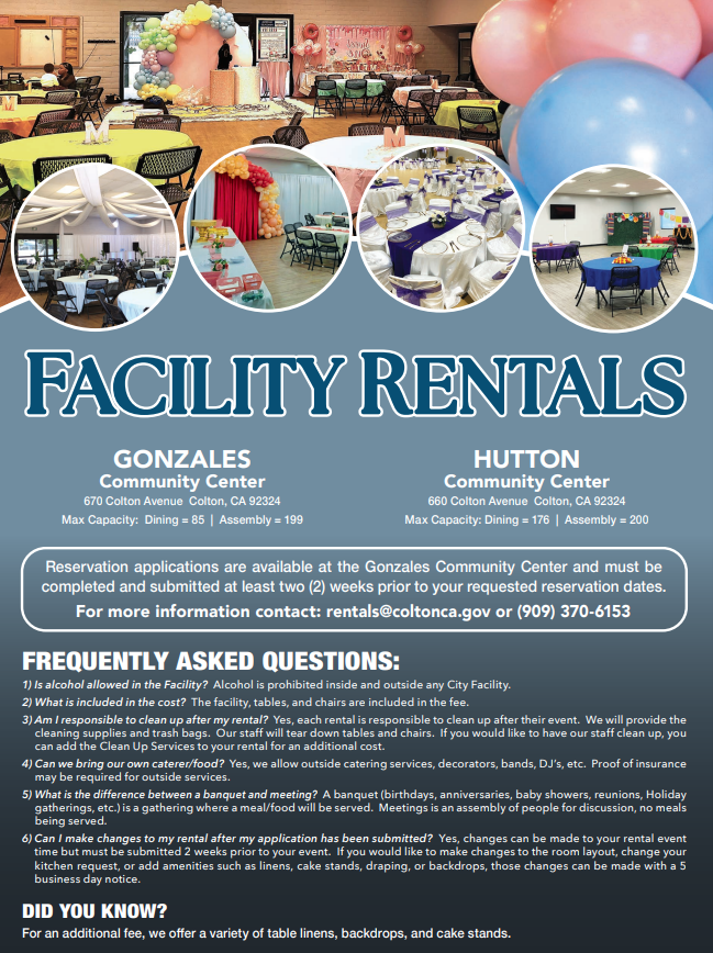 Looking to add a backdrop to your event, we now offer backdrops. Call (909) 370-6153 or email rentals@coltonca.gov to inquire about fees.